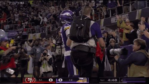Jordan Addison celebrates his touchdown for the Minnesota Vikings against the 49ers in the first quarter.