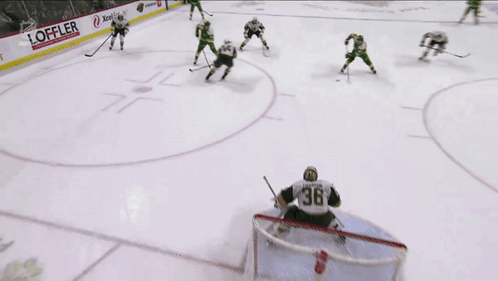 Kirill Kaprizov of the Minnesota Wild scores a thrilling goal in a hockey game, celebrating with his teammates.