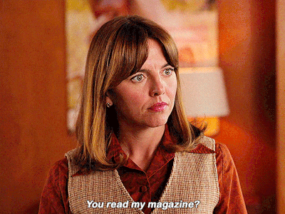 Joyce Prigger from Minx asks, 'You read my magazine?' with a concerned expression.
