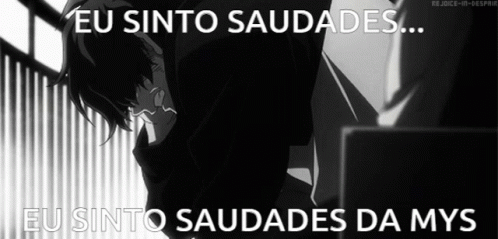 Miojo, an anime character, expresses deep sadness and longing, stating 'I miss Mys' in Portuguese.