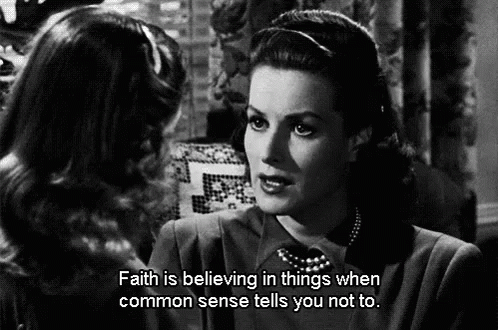 A memorable quote about faith from the classic film Miracle On 34th Street, featuring two women.