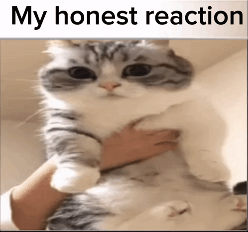 Мирон Пикуль и Комару представляют: милый кот с выражением 'Моя честная реакция' на руках у человека.