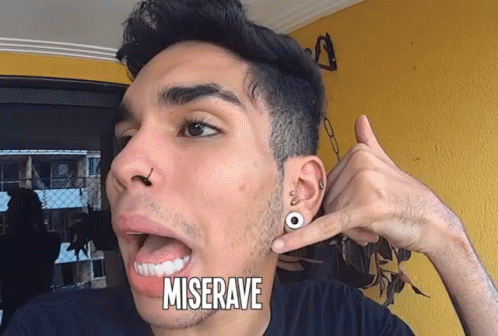 Thiago Barros making a 'call me' hand gesture with the word 'MISERAVE' displayed on screen.