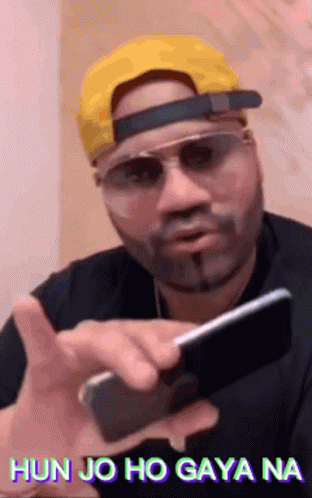 Mishtersami Jaandeo, wearing a yellow hat and sunglasses, holds a phone and says "Ho Gaya".
