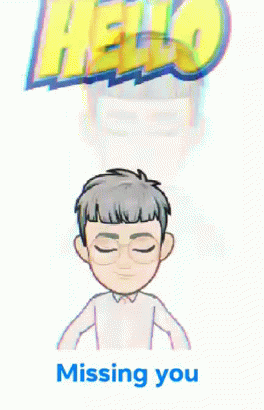 Cartoon drawing of a man with glasses and grey hair, accompanied by 'HELLO' and 'Missing you' text.