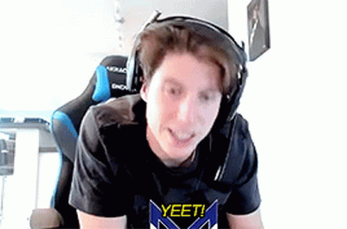 Mitch Marner, wearing headphones, says 'Yeet!' while sitting in a gaming chair.