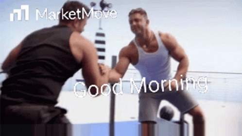 Two men greet each other with a hug, displaying 'MarketMove Good Morning' text.