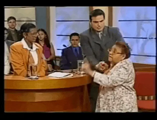 Man in a suit making a pained or crying expression in an office setting, with another man partially visible.