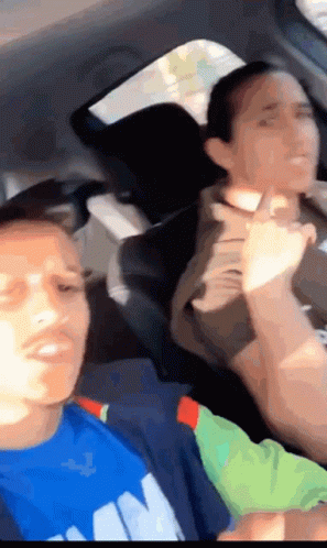 Mmz Moha in a car, making a 'no' gesture with his finger. He wears a blue shirt and a colorful jacket.