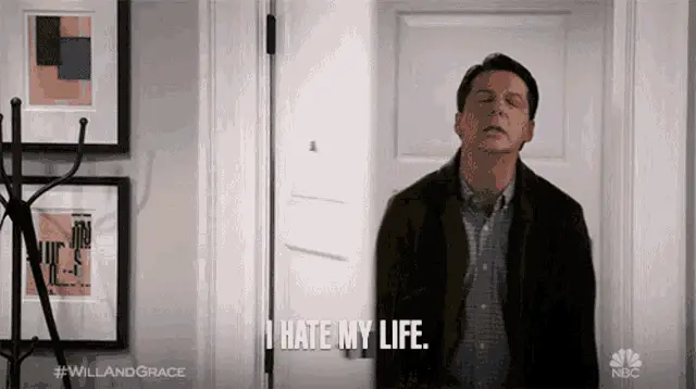 Anasala Family member with a meme-like expression, Arabic text 'Isn't it unfair to me?' overlaid, feeling exhausted.