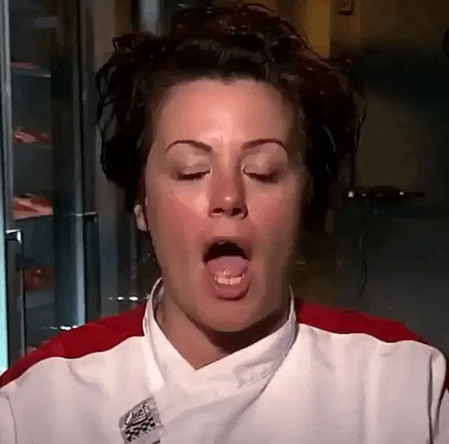 A woman makes a hilarious funny face, stretching her mouth wide with her hands.