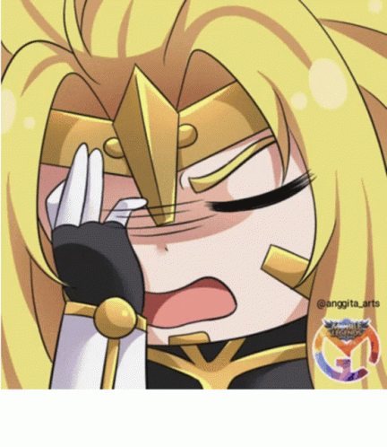 Masha from Mobile Legends looking annoyed, covering her face with her hand.
