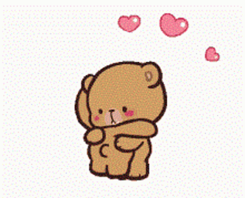 Two cute animated Mocha bears, one turns and sends hearts floating around, showing affection.