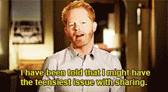 Jesse Tyler Ferguson as Mitchell Pritchett from Modern Family, admitting to a 'teensiest issue with sharing'.
