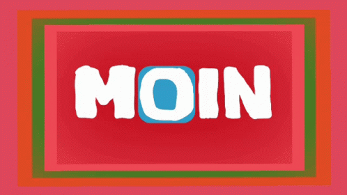 The word MOIN animates with changing background and border colors, a vibrant greeting.