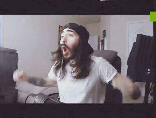 Moist Critikal (Charlie) reacting with a distorted, horror-like effect, referencing Mandela Catalogue.