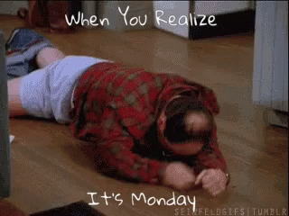 George Costanza from Seinfeld dramatically reacts to the realization that it's Monday, lying on the floor in despair.