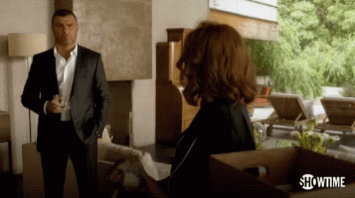 Liev Schreiber as Ray Donovan confidently tells a woman, 'Whatever your fee is, I'll pay it.'