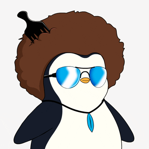 A cool penguin with an afro and sunglasses, featuring dollar signs in its eyes, ready for some money moves.