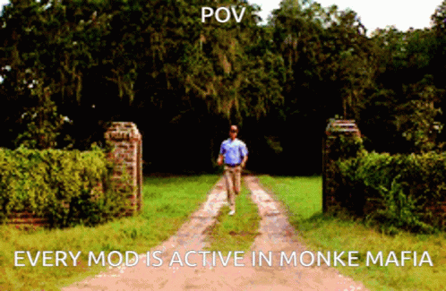 A man runs down a road, illustrating the POV of every mod being active in Monke Mafia.