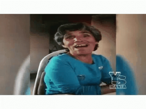 Monse laughing joyfully, sitting at a table in a blue shirt, sharing a moment of happiness.
