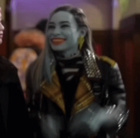 Ceci Balagot as Frankie Stein from Monster High The Movie, smiling in her iconic blue skin and leather jacket.