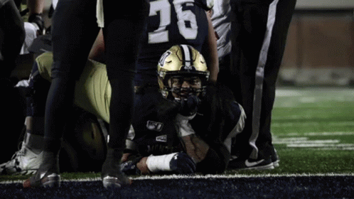 A Montana State Bobcats football player, number 26, lies on the field during a game.