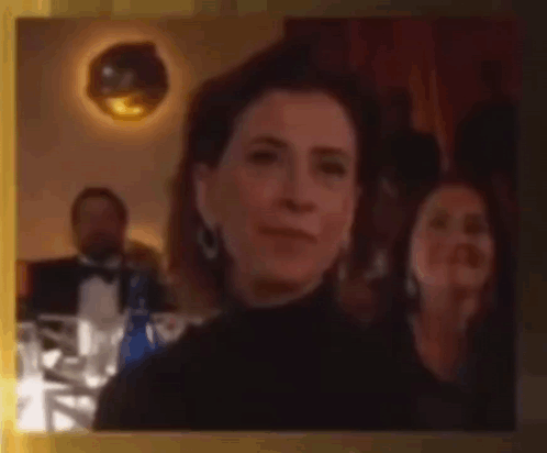 Selton Melo shouts into Fernanda Torres' ear at an awards ceremony, causing her to react with surprise and amusement.