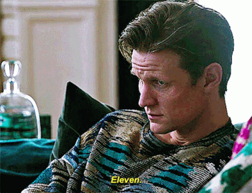 Matt Smith as Lucien in Morbius says 'Eleven' while sitting on a couch.
