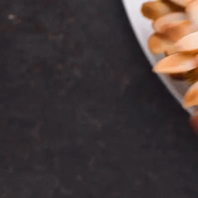 A beautifully decorated flower muffin, resembling a sunflower, with almond petals and a chia seed center.