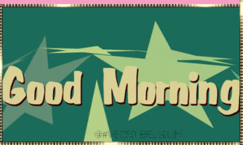 Animated 'Good Morning' message with moving stars on a green background, created by Vec50 Belgium.