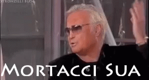 A man in sunglasses and a black jacket speaks, with the Italian phrase 'Mortacci Sua' displayed.