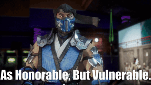Sub-Zero from Mortal Kombat 11, embodying the phrase 'As Honorable, But Vulnerable.'