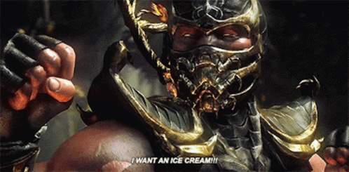 Scorpion from Mortal Kombat dramatically declares his desire for ice cream.