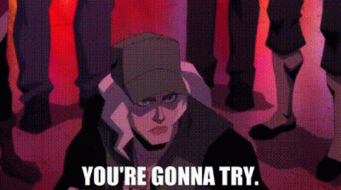 Sonya Blade from Mortal Kombat in a determined stance, challenging an opponent with 'YOU'RE GONNA TRY.'