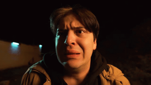 A man from Enchufe Tv looks mortified and scared, captured in a moment of intense emotion.