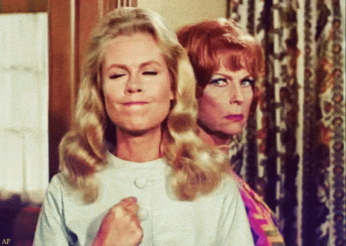 Elizabeth Montgomery as Samantha Stephens and Agnes Moorehead as Endora in a scene from Bewitched.
