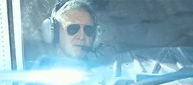 Moumita's fighter jet performs a stunning display, releasing bright flares against a cloudy sky.
