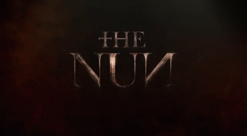The official title card for the horror film 'The Nun' appears on a dark, smoky background.