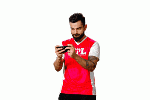 Virat Kohli, wearing an MPL shirt, celebrates a mobile gaming victory with enthusiasm.