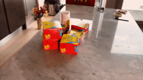 a stack of mcdonald 's bags on a counter top
