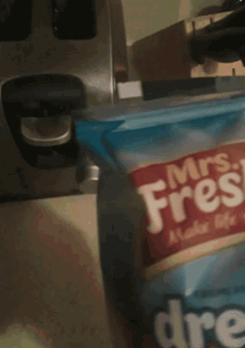 A close-up of a bag of Mrs. Freshley's Dreamies Raspberry Gâteaux, a sweet baked snack.