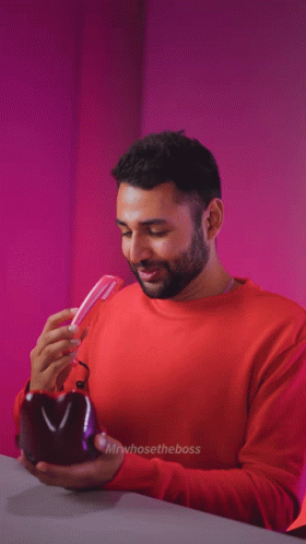 Mrwhosetheboss humorously interacts with a novelty tongue-shaped phone receiver, making it appear as his own tongue.