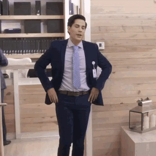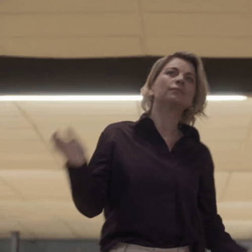 Ludwika Paleta from 'Madre Solo Hay Dos' dances energetically in a burgundy shirt.