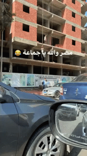 A construction worker in Egypt is seen being lifted up the side of a tall building using a rope and pulley system.