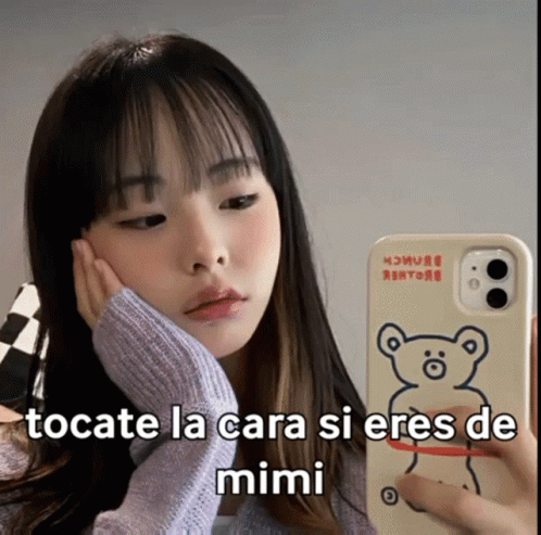 Kim Seonyou playfully touches her face in response to the 'touch your face if you are Mimi's' caption.
