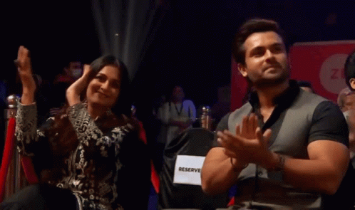 Dipika Kakar and Shoaib Ibrahim enthusiastically clap at an event, showcasing their couple goals.