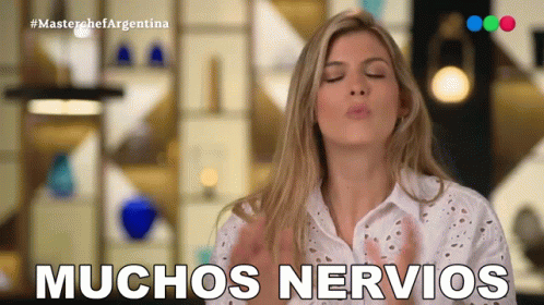 Mery Del Cerro expresses 'Muchos Nervios' (Many Nerves) during Masterchef Argentina, looking anxious.