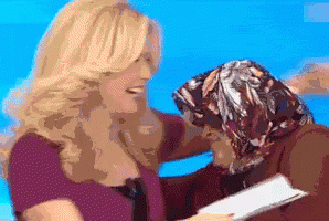 Müge Anlı shares an emotional reunion hug with an older woman in a purple shirt.