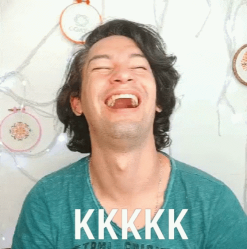 Wagner Reis laughing heartily with 'KKKKK' text, a funny and joyful moment.